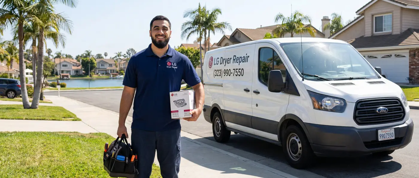 Same pricing as all of Orange County — no Mission Viejo premium. Most repairs $280–380. The $65 diagnostic fee is waived when you approve any repair. Full pricing at our LG dryer repair cost page. Every invoice includes a 10% discount code for your next service call — never expires.