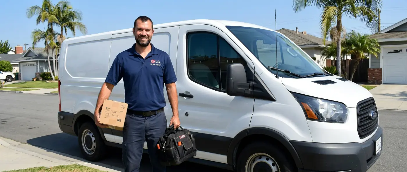 Same pricing as all of LA County — no Torrance premium. Most repairs $280–380. Gas connector inspection included on every Hollywood Riviera coastal call. The $65 diagnostic fee is waived when you approve any repair. Full pricing at our LG dryer repair cost page. Every invoice includes a 10% discount code for your next service call — never expires.