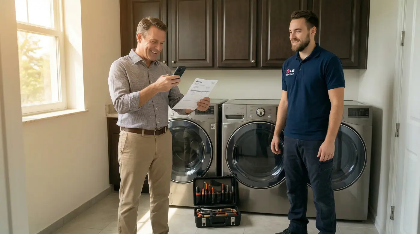 LG dryer heating element replacement costs $300–380 total in Los Angeles, Orange County, and Ventura County — OEM element, thermal fuse test, vent airflow test, labor, and 1-year warranty included. The $65 diagnostic fee is waived when you approve the repair. This page explains exactly what drives the price, how we confirm it's actually the element (not the cheaper thermal fuse), and whether it's worth fixing.