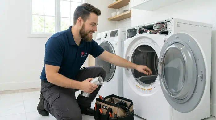 When you call (323) 990-7550, we schedule same-day service for most Los Angeles County locations. Our technician arrives with a fully stocked truck containing genuine LG parts for all major model series. The diagnostic process starts by testing the actual exhaust airflow - we use a digital manometer to measure back-pressure in the vent system.